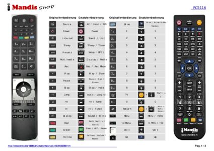 Ein Dokument ist enthalten, um die Verwendung der neuen Fernbedienung zu erleichtern, indem es die Tastenbelegung zeigt.