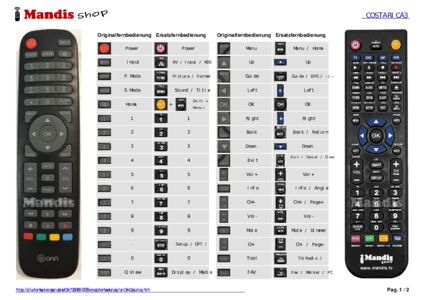 Ein Dokument ist enthalten, um die Verwendung der neuen Fernbedienung zu erleichtern, indem es die Tastenbelegung zeigt.