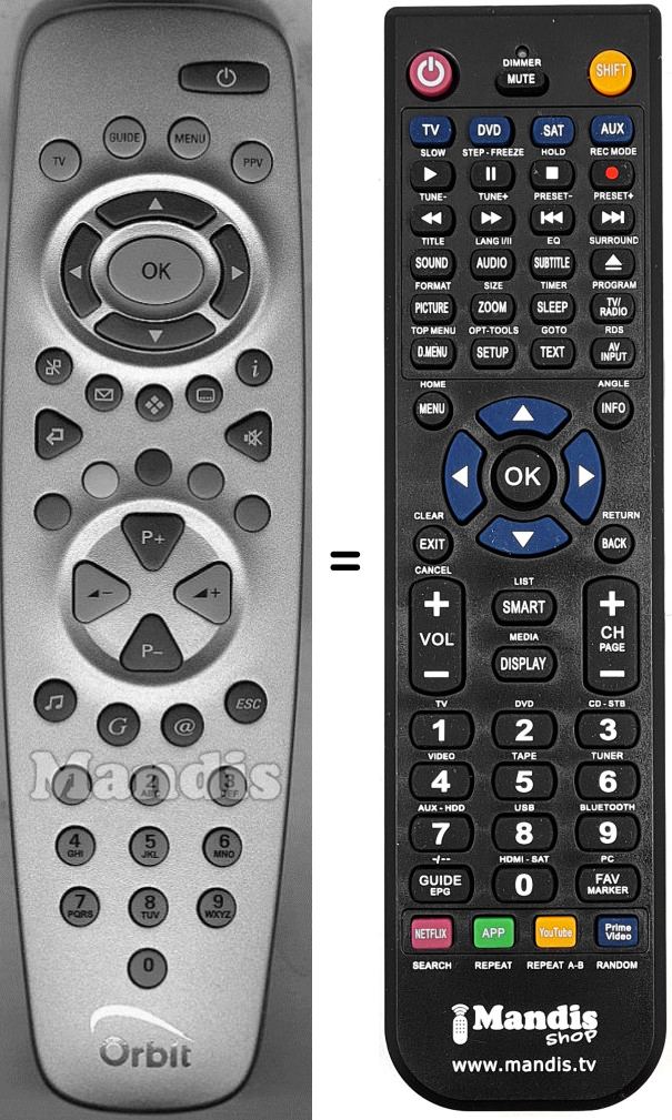 Fernbedienung, die das Original und die Gesamtheit seiner Funktionen, vollständig ersetzt. Es handelt sich jedoch nicht um eine Universalfernbedienung sondern um eine Fernbedienung die das Original ersetzt. Sie erhalten eine nach Einlegen der Batterien sofort einsatzbereite Fernbedienung. Jegliches Programmieren entfällt. Wir geben umfassende Garantie dafür, dass diese Fernbedienung alle Funktionen der Originalfernbedienung erfüllt.