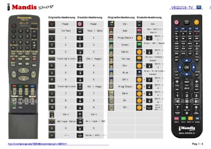 Ein Dokument ist enthalten, um die Verwendung der neuen Fernbedienung zu erleichtern, indem es die Tastenbelegung zeigt.