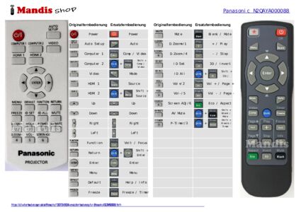 Ein Dokument ist enthalten, um die Verwendung der neuen Fernbedienung zu erleichtern, indem es die Tastenbelegung zeigt.