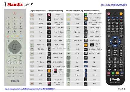 Ein Dokument ist enthalten, um die Verwendung der neuen Fernbedienung zu erleichtern, indem es die Tastenbelegung zeigt.
