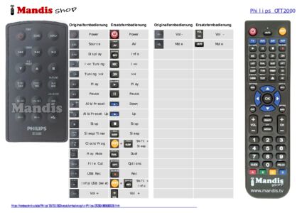Im Folgenden zeigen wir Ihnen die Zuordnung jedes einzelnen Knopfes der Originalfernbedienung zu der Taste, die dieselbe Funktion auf der Ersatzfernbedienung ausführt. In einigen Fällen müssen Sie möglicherweise die UMSCHALT-Taste drücken, bevor Sie eine andere Taste drücken, um bestimmte Aktionen auszuführen. Diese zusätzlichen Funktionen werden oft wenig genutzt und dienen dazu, das Verständnis der Ersatzfernbedienung zu erleichtern oder weil die Originalfernbedienung mehr Tasten hat als das entsprechende Modell.