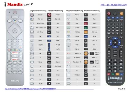 Ein Dokument ist enthalten, um die Verwendung der neuen Fernbedienung zu erleichtern, indem es die Tastenbelegung zeigt.