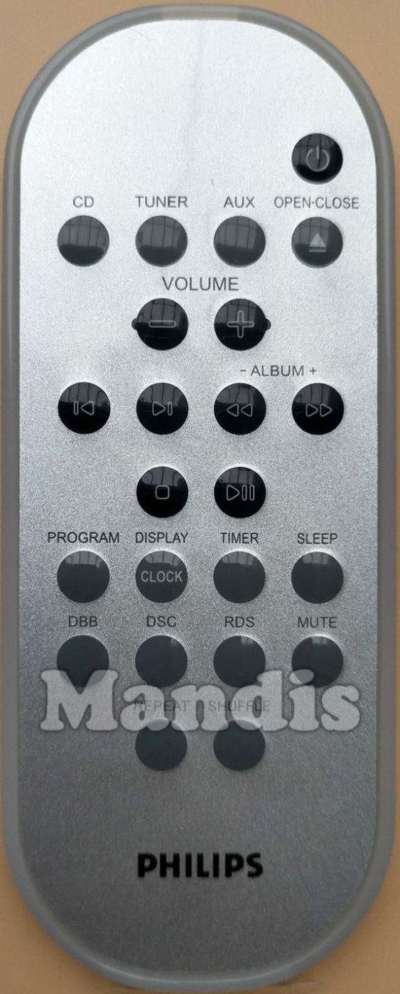 Fernbedienung Original 994000000246 zur Steuerung der Hi-Fi-Anlage der Marke Philips. Es handelt sich um eine Originalfernbedienung.