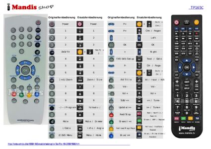 Ein Dokument ist enthalten, um die Verwendung der neuen Fernbedienung zu erleichtern, indem es die Tastenbelegung zeigt.