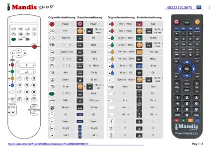 Ein Dokument ist enthalten, um die Verwendung der neuen Fernbedienung zu erleichtern, indem es die Tastenbelegung zeigt.