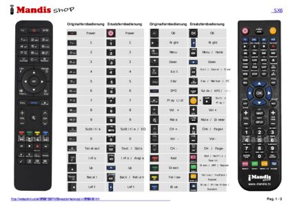 Ein Dokument ist enthalten, um die Verwendung der neuen Fernbedienung zu erleichtern, indem es die Tastenbelegung zeigt.