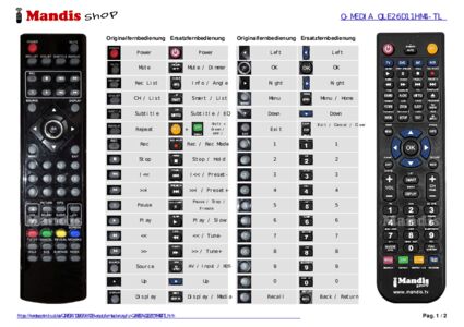 Ein Dokument ist enthalten, um die Verwendung der neuen Fernbedienung zu erleichtern, indem es die Tastenbelegung zeigt.