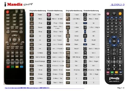 Ein Dokument ist enthalten, um die Verwendung der neuen Fernbedienung zu erleichtern, indem es die Tastenbelegung zeigt.