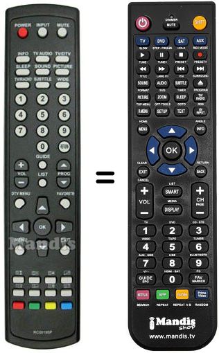 Die Fernbedienung ersetzt das Original RC00195P in der Gesamtheit seiner Funktionen.