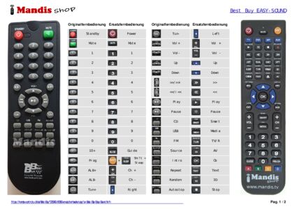 Ein Dokument ist enthalten, um die Verwendung der neuen Fernbedienung zu erleichtern, indem es die Tastenbelegung zeigt.