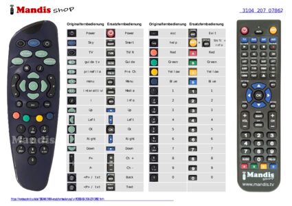 Ein Dokument ist enthalten, um die Verwendung der neuen Fernbedienung zu erleichtern, indem es die Tastenbelegung zeigt.