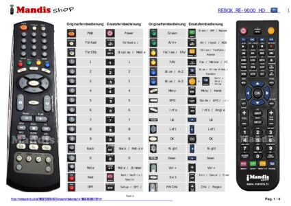 Diese Fernbedienung ersetzt die meisten Funktionen Ihres RE-9000 HD. Es ist keine Universalfernbedienung, sondern eine Kopie mit den meisten Tasten und Funktionen Ihres Originals.