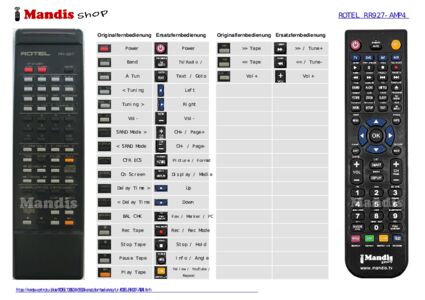 Diese Fernbedienung ersetzt die meisten Funktionen Ihres RR-927-AMP4. Es ist keine Universalfernbedienung, sondern eine Kopie mit den meisten Tasten und Funktionen Ihres Originals.