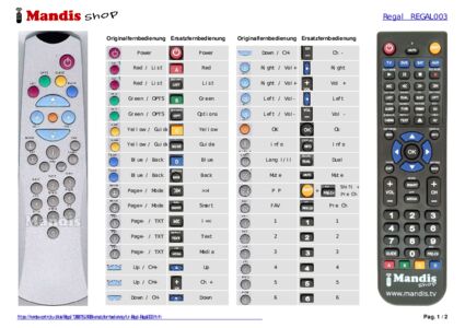 Ein Dokument ist enthalten, um die Verwendung der neuen Fernbedienung zu erleichtern, indem es die Tastenbelegung zeigt.
