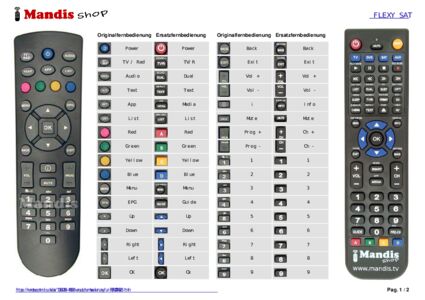 Ein Dokument ist enthalten, um die Verwendung der neuen Fernbedienung zu erleichtern, indem es die Tastenbelegung zeigt.