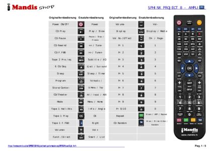 Ein Dokument ist enthalten, um die Verwendung der neuen Fernbedienung zu erleichtern, indem es die Tastenbelegung zeigt.