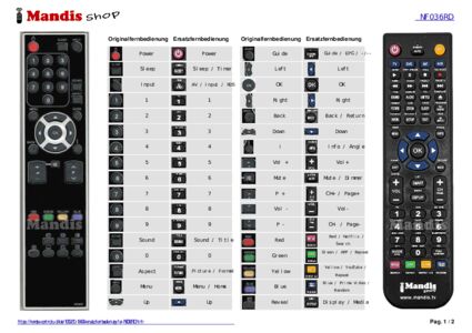 Ein Dokument ist enthalten, um die Verwendung der neuen Fernbedienung zu erleichtern, indem es die Tastenbelegung zeigt.