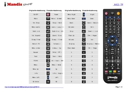 Ein Dokument ist enthalten, um die Verwendung der neuen Fernbedienung zu erleichtern, indem es die Tastenbelegung zeigt.