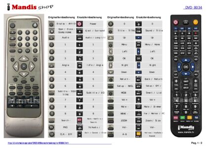 Ein Dokument ist enthalten, um die Verwendung der neuen Fernbedienung zu erleichtern, indem es die Tastenbelegung zeigt.