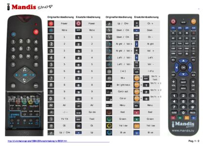 Ein Dokument ist enthalten, um die Verwendung der neuen Fernbedienung zu erleichtern, indem es die Tastenbelegung zeigt.