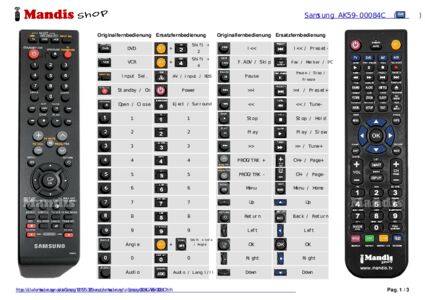 Ein Dokument ist enthalten, um die Verwendung der neuen Fernbedienung zu erleichtern, indem es die Tastenbelegung zeigt.