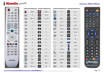 Ein Dokument ist enthalten, um die Verwendung der neuen Fernbedienung zu erleichtern, indem es die Tastenbelegung zeigt.
