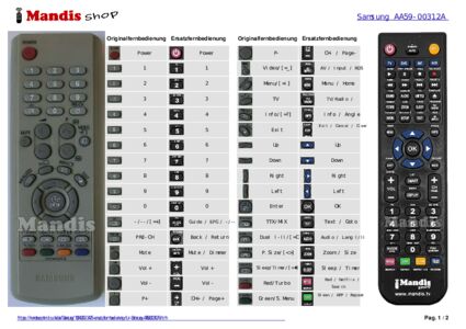 Diese Fernbedienung ersetzt Ihre AA5900312A in vollem Umfang und bietet alle Funktionen des Originals.