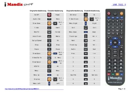 Ein Dokument ist enthalten, um die Verwendung der neuen Fernbedienung zu erleichtern, indem es die Tastenbelegung zeigt.