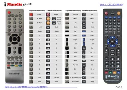 Ein Dokument ist enthalten, um die Verwendung der neuen Fernbedienung zu erleichtern, indem es die Tastenbelegung zeigt.