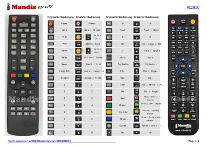 Ein Dokument ist enthalten, um die Verwendung der neuen Fernbedienung zu erleichtern, indem es die Tastenbelegung zeigt.
