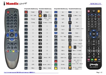 Diese Fernbedienung ersetzt Ihre REMCON1135 in vollem Umfang und bietet alle Funktionen des Originals.