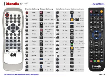 Im Folgenden zeigen wir Ihnen die Zuordnung jedes einzelnen Knopfes der Originalfernbedienung zu der Taste, die dieselbe Funktion auf der Ersatzfernbedienung ausführt. In einigen Fällen müssen Sie möglicherweise die UMSCHALT-Taste drücken, bevor Sie eine andere Taste drücken, um bestimmte Aktionen auszuführen. Diese zusätzlichen Funktionen werden oft wenig genutzt und dienen dazu, das Verständnis der Ersatzfernbedienung zu erleichtern oder weil die Originalfernbedienung mehr Tasten hat als das entsprechende Modell.
