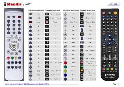 Ein Dokument ist enthalten, um die Verwendung der neuen Fernbedienung zu erleichtern, indem es die Tastenbelegung zeigt.