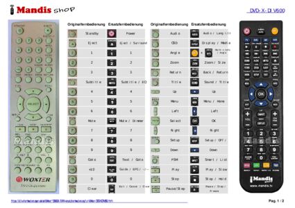 Ein Dokument ist enthalten, um die Verwendung der neuen Fernbedienung zu erleichtern, indem es die Tastenbelegung zeigt.