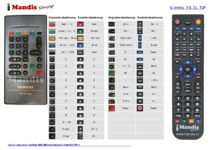Diese Fernbedienung ersetzt die meisten Funktionen Ihres FB 31 TOP. Es ist keine Universalfernbedienung, sondern eine Kopie mit den meisten Tasten und Funktionen Ihres Originals.