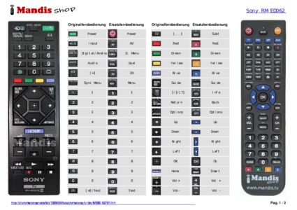 Diese Fernbedienung ersetzt Ihre RM-ED062 (149271811) in vollem Umfang und bietet alle Funktionen des Originals.