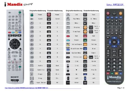 Diese Fernbedienung ersetzt Ihre RMT-D233P (147965911) in vollem Umfang und bietet alle Funktionen des Originals.