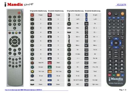Ein Dokument ist enthalten, um die Verwendung der neuen Fernbedienung zu erleichtern, indem es die Tastenbelegung zeigt.