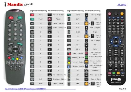 Ein Dokument ist enthalten, um die Verwendung der neuen Fernbedienung zu erleichtern, indem es die Tastenbelegung zeigt.
