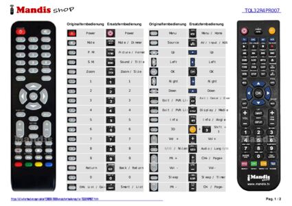 Ein Dokument ist enthalten, um die Verwendung der neuen Fernbedienung zu erleichtern, indem es die Tastenbelegung zeigt.