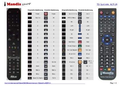 Home > Marken > Fernbedienungen TD Systems > Fernbedienung für TD SYSTEMS Altius (K42DLT1F)