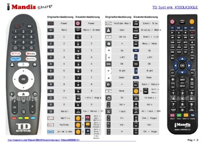 Home > Marken > Fernbedienungen TD Systems > Fernbedienung für TD Systems K55DLK20GLE
