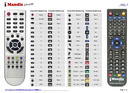 Ein Dokument ist enthalten, um die Verwendung der neuen Fernbedienung zu erleichtern, indem es die Tastenbelegung zeigt.