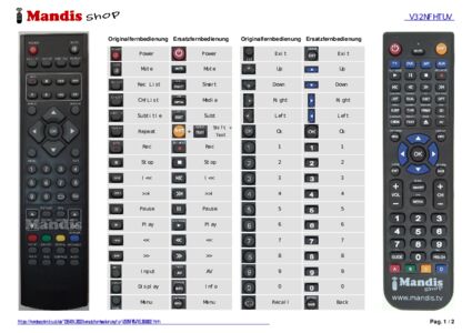 Ein Dokument ist enthalten, um die Verwendung der neuen Fernbedienung zu erleichtern, indem es die Tastenbelegung zeigt.
