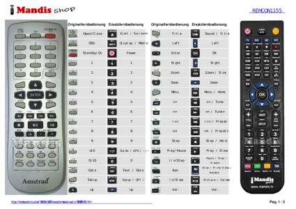 Diese Fernbedienung ersetzt Ihre REMCON1155 in vollem Umfang und bietet alle Funktionen des Originals.