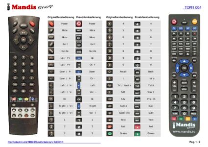 Ein Dokument ist enthalten, um die Verwendung der neuen Fernbedienung zu erleichtern, indem es die Tastenbelegung zeigt.