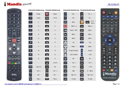 Ein Dokument ist enthalten, um die Verwendung der neuen Fernbedienung zu erleichtern, indem es die Tastenbelegung zeigt.