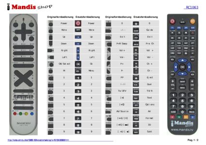 Diese Fernbedienung ersetzt Ihre RC1063 (20374217) in vollem Umfang und bietet alle Funktionen des Originals.